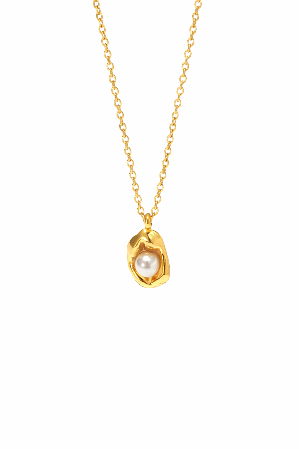 Refined and softly radiant, the Fawn Necklace is designed to bring understated elegance to every look. Featuring a sculpted gold pendant cradling a luminous pearl, this piece captures organic beauty with a modern edge — perfect for effortless, everyday styling.